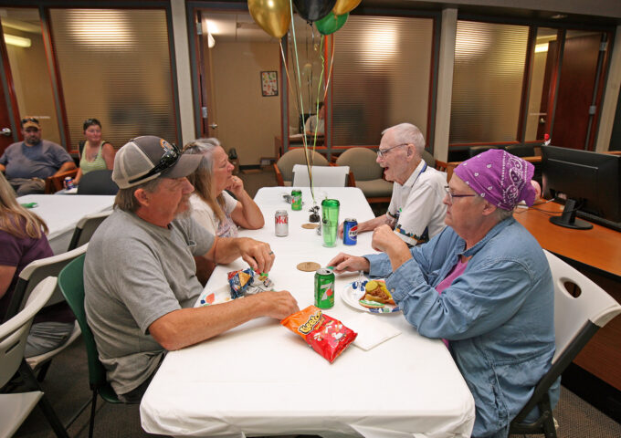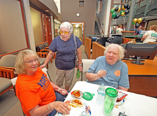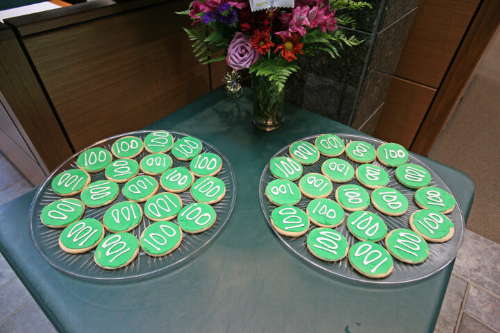 The birthday meal of pulled pork sandwiches was made from two hogs purchased by the bank from the Poweshiek County Fair Auction and prepared by Dayton Meats in Malcom. Customers were also treated to baked bean, chips, cold drinks and cookies with their meal, all served by banking staff.